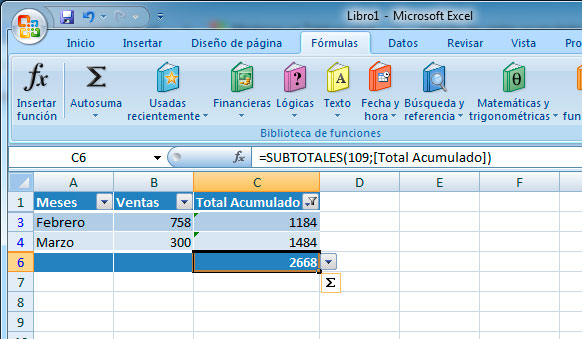 5. Quieres conocer el total de ventas de cada cliente en el mes dado, para ello basta con emplear la herramienta Subtotales incluida en el grupo de trabajo Esquema dentro del menú Datos, tanto en Excel 2010 como en la versión 2007. En Excel 2003 está en el menú Datos, y luego en Subtotales,